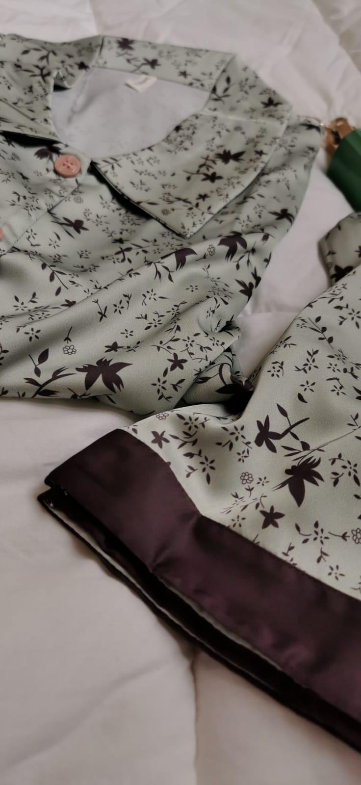بيجامه حرير ناعممه.قميص باكمام طويله مع بنطلون.