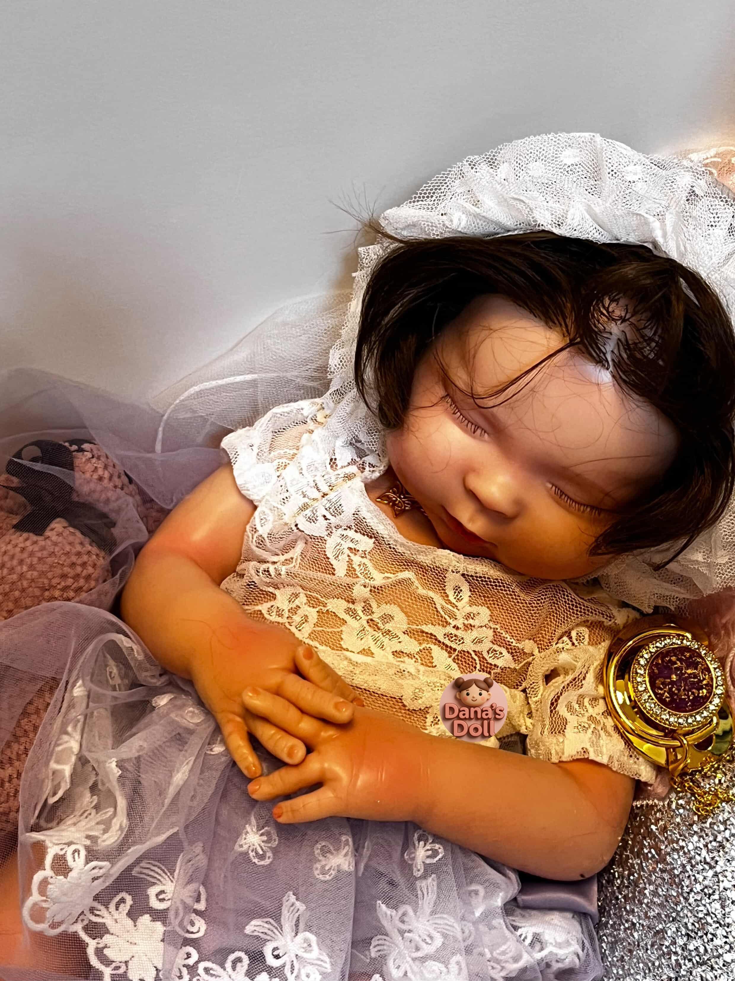 Full-body silicone rubber doll with lifelike features, just like a real baby. 100% handmade. Gently and carefully immersed in water. Silicon rubber doll
