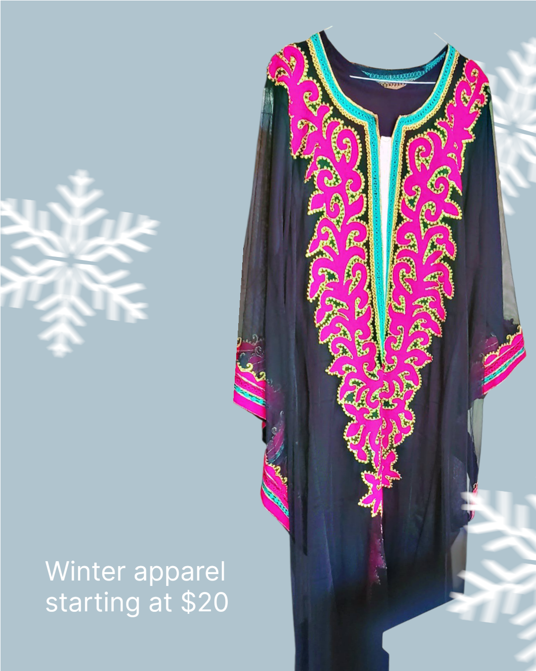 ثوب شبك لون اسود مع تطريز لون فوشي