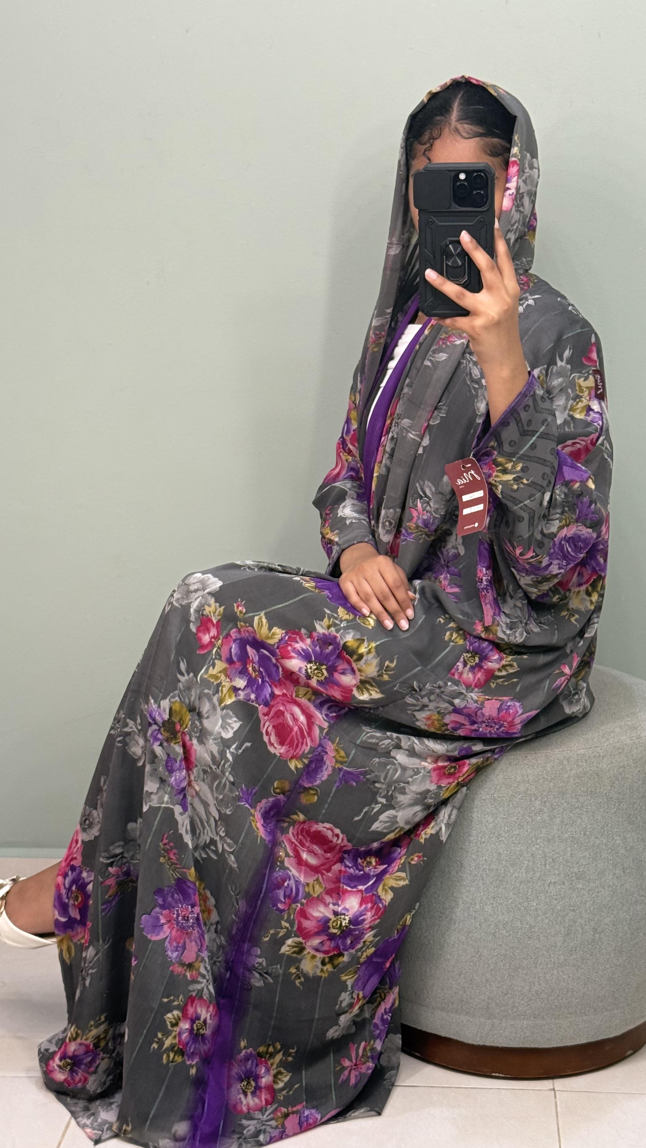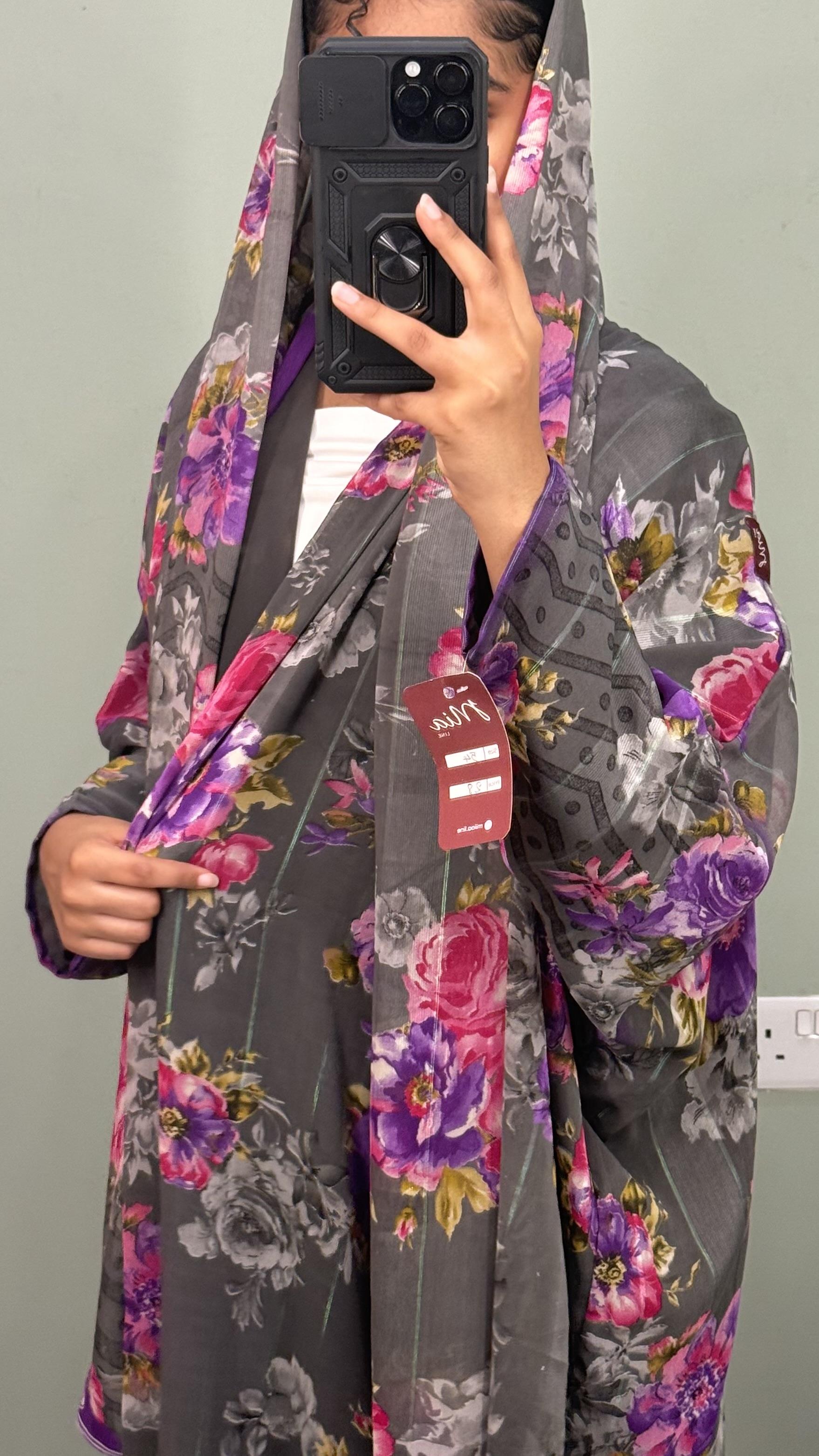 Gray with floral prints in purple
