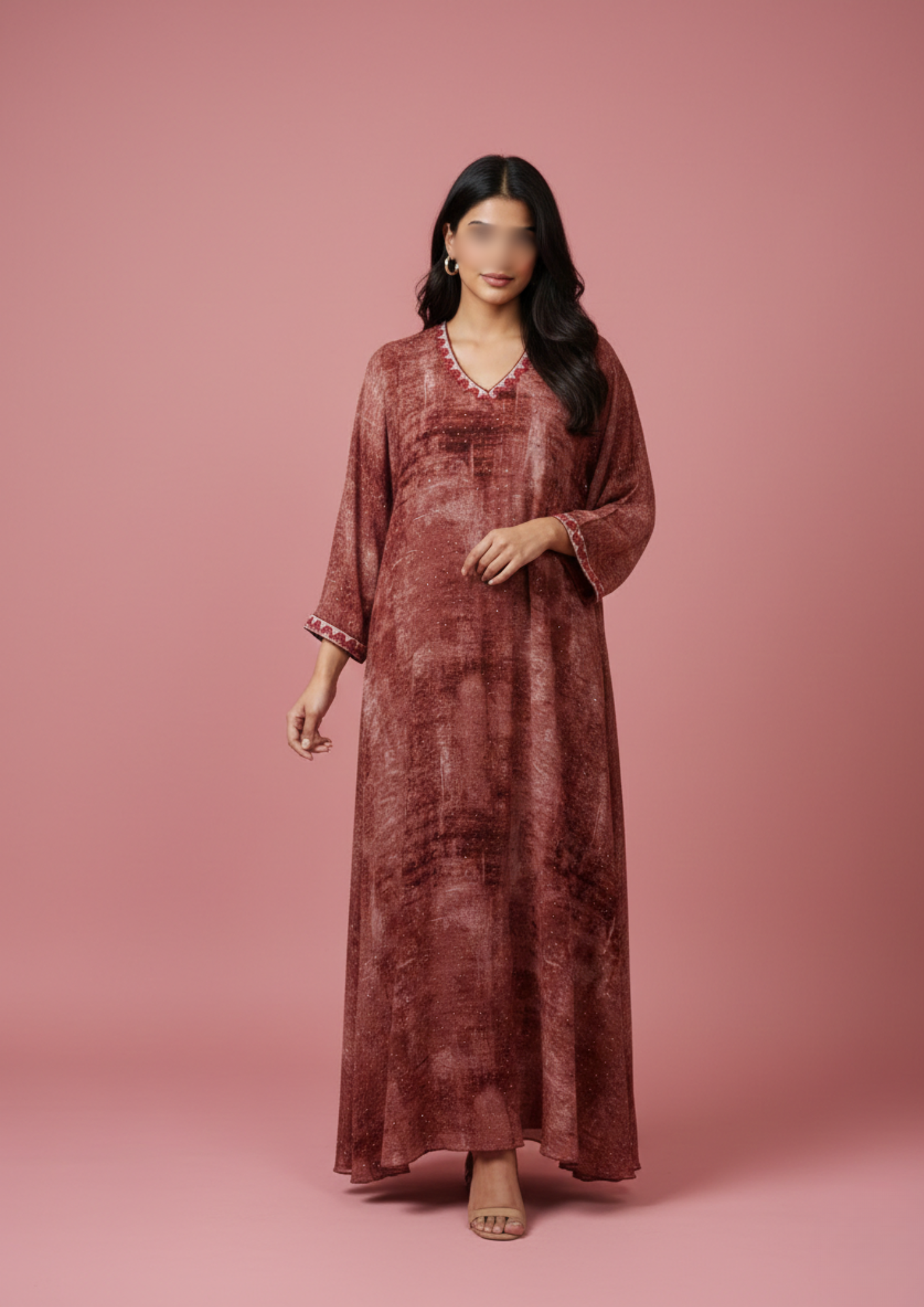 double chiffon dress , red shades color with silver and red crystals